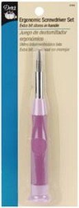 This is the perfect tool for your sewing and quilting tool box! This package contains 1 screwdriver with an ergonomic design which is easier to handle, includes both flat and Phillips head bits, extra bits store in the handle and the rotating cap on the end allows you to use it in tight places your hand can not reach with a traditional screwdriver. Screwdriver measures 5-1/2" x 3/4".