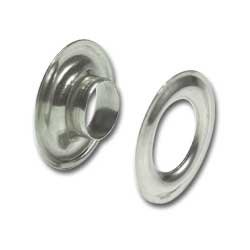 Size #1 Nickel Grommets5/16" i.d., 3/4" o.d., 3/16" depth8.9mm i.d., 19mm o.d., 4.7mm depthPlated brass standard grommet with washer (eyelets do not have a washer). Recommended to help prevent fraying and torn holes in leather and fabric. Set with size specific grommet setter and anvil (sold separately) or other style setter.